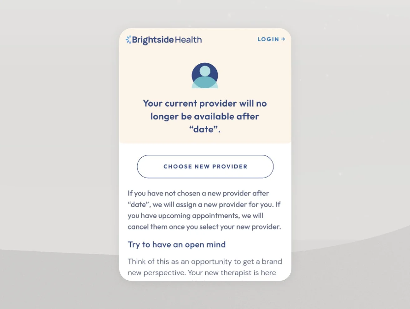 Designs focused on helping members navigate a sensitive turning point in their mental health journey: when their provider unexpectedly leaves.